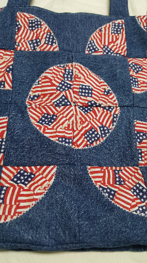 Red, White & Floral Blue Daisy Chain Queen Quilt